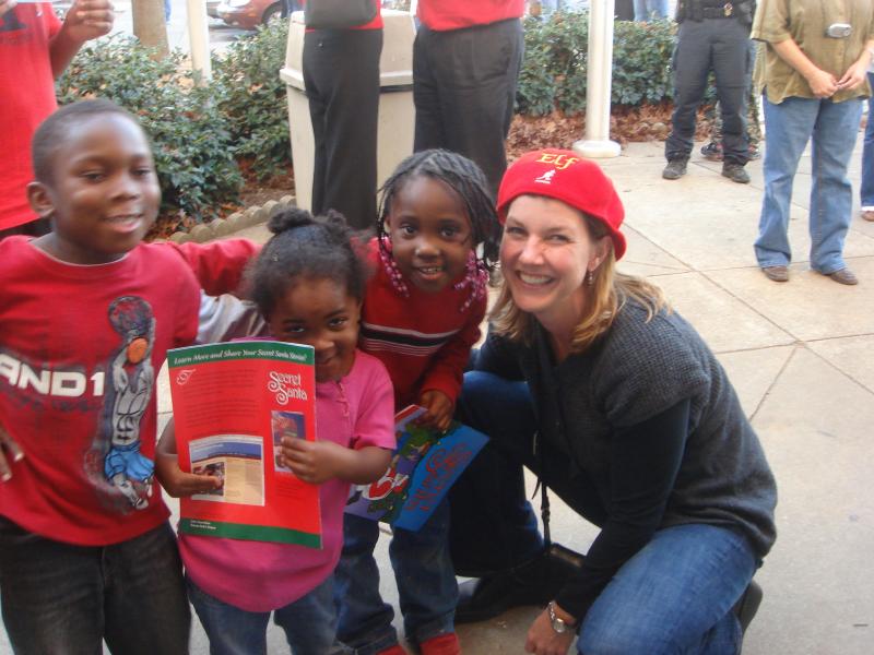 Below Secret Santa and his loyal ELFs passed out the Secret Santa Coloring Book and tell the story of Secret Santa to children. From a school for homeless children in Phoenix, AZ, to the street corners of Charlotte, NC the story of Secret Santa continues. God bless our children -- they are our future.